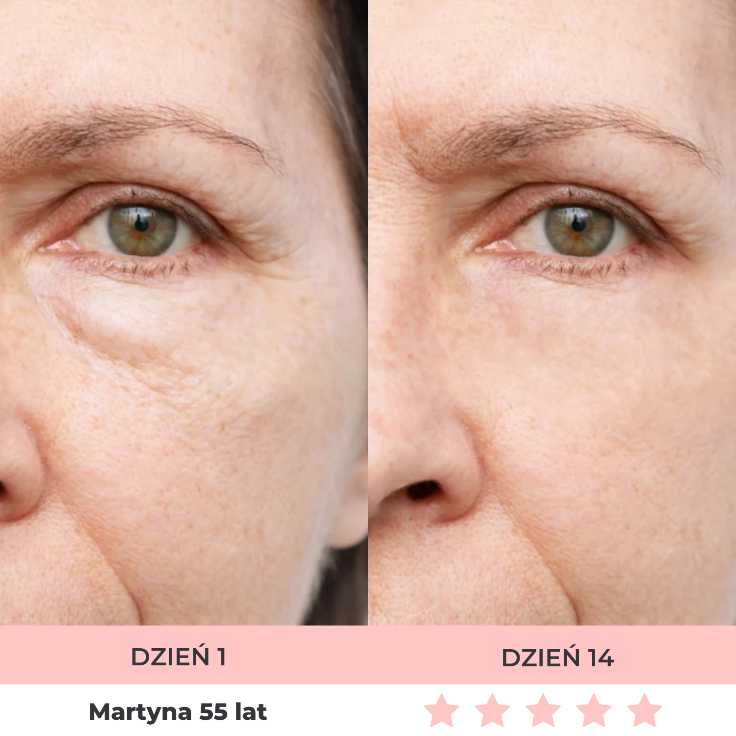 Zobacz efekty w mniej niż 30 dni. Zredukowane cienie pod oczami, worki pod oczami, drobne linie i zmarszczki.